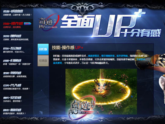 近日,《奇迹归来》上线的UP+专题,更呈现了《奇迹》12年来的完美蜕变。与经典版相比,回归版更有亮点。强化星级的锻造模式,可以弱补强,令装备属性永久保值,给你大大的成就感。技能秒屏绝杀,操作感极为流畅。全新加入的宠物皮肤、坐骑加成,将助你飞速成长。好友可无缝社交、互动更强;战盟凝聚兄弟力量,更有归属感。任务指引剧情发展,副本融合多项挑战!回归版全面UP+十大玩法,将给你超越以往的游戏体验!