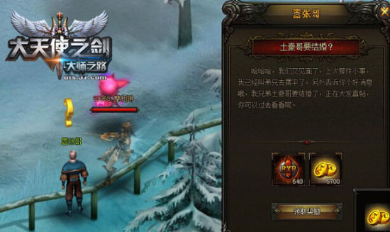 当我们达到一定级别的时候,就可以在冰风谷遇到一场奢侈的婚礼,系统会提示我们将在婚礼上免费领取到一只独角兽,作为我们在37《大天使之剑》里独特骑宠。坐骑的好处不仅仅在于它提高了我们的行动力,让我们拥有了独特的外形效果。还在于一旦我们拥有了坐骑就能得到永久的战斗力提升,是让我们能畅快热血厮杀必备的伙伴。