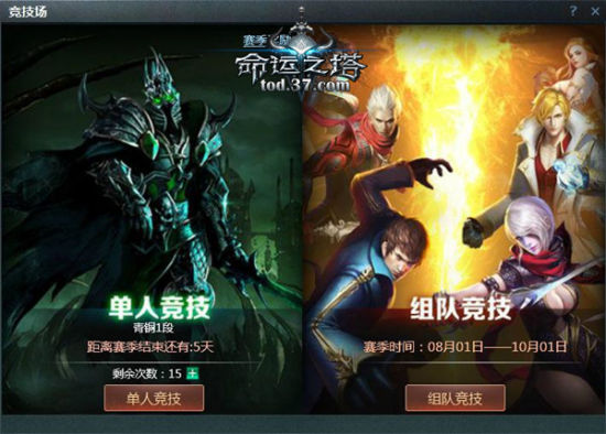 37《命运之塔》玩家等级达到17级时,自动开启竞技场玩法。37《命运之塔》竞技场分为单人竞技、组队竞技两个玩法。与其他玩家进行竞技,可以磨练自己的战斗技巧,证明自己的实力哦。除了不断地熟练操作,练就无敌手操外,在竞技场中还可以获得珍贵的灵魂石,它是英雄进阶的重要材料!