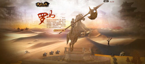 37《天将雄师》的印象站做的还是相当细致,小编一打开就感受到神秘肃杀之气扑面而来。隐约闪动的文字前,是《天将雄师》的剧情铺设开来,滚动在屏幕上。而随着一个锈迹斑斑的青铜门瞬间开启,历史,同时在一道白光中闪现!漫天黄沙下,早已泯灭的帝国重现在我们眼前……