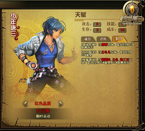 在游族网络《绝世唐门》之中,少年唐三由于其强大的实力和不错的羁绊效果,深受众多玩家的喜爱。那么,少年唐三的具体能力到底如何呢?接下来,将为各位玩家来详细介绍一下这位伙伴。