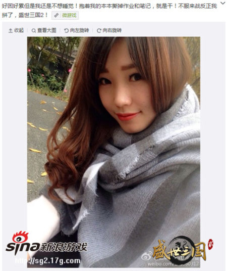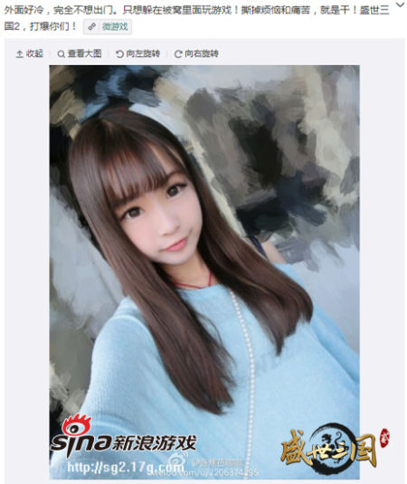 以下是部分【美玩堂】成员在《盛世三国2》开服当天发布的微博,赤果果滴向广大男玩家下战书了,你敢接吗?仔细看图有玄机哦~辣位秋裤妹纸你过来,我保证不打你!!
