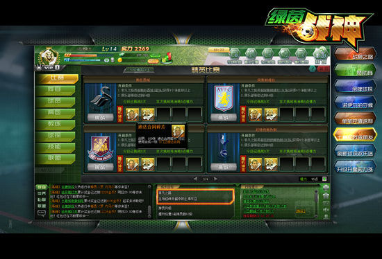 在《绿茵战神》全新版本中,想要签约更多更珍贵的球员,光靠比赛掉落和球探玩法是远远不够的,“精英比赛”这一新版玩法可让玩家得到极其珍贵的“隐藏”球员。游戏中,当非凡之路的某支队伍达到净胜球数量,并且俱乐部等级达到要求后即可开启精英比赛,精英比赛中将掉落指定的球员碎片,凑满100张以后可合成该球员。另外,精英比赛将消耗精力,如何在精力用尽之前拿到更多的球员碎片还需玩家自己合理调配哟。