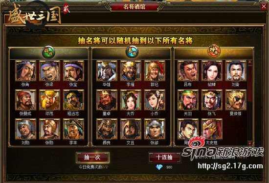 名将可分为三类:“战将”、“良将(次强)”、“神将(最强)”3个档次,名将档次越高,名将加成属性就越强。