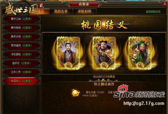 激活名将组合里的全部武将可以激活该组合,获得超强的组合属性。当所有组合里的名将都提升品质时,组合也会提升品质,组合属性更加强大。