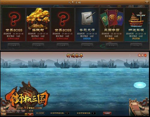 91wan《街机三国》第四大人气活动——押送军粮,这一活动于每天20点10分至21点30分开启,花费对应费用即可选择:舢板小船、三桅帆船、艨艟巨舰这三大不同船只。选用品质越高的船只,所获得的奖励则越高,最多可获得350W金币及5个精魄。有押粮当然也有劫粮,每个玩家每天可以劫粮5次。在劫粮前之前,可先查看对方战力以确保劫粮成功。不想被劫粮的话就只能老老实实的提高战力了。