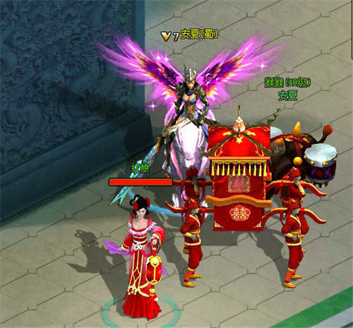 玩家成功发出求婚申请后,对方界面会出现一个9377《盛世三国2》结婚系统的求婚提示界面,只有在对方同意的情况下,双方才可以按照相应婚礼流程进行结婚。结婚之后的双方将拥有快速传送到配偶身边的能力,而且还有夫妻属性加成、夫妻双修等福利。