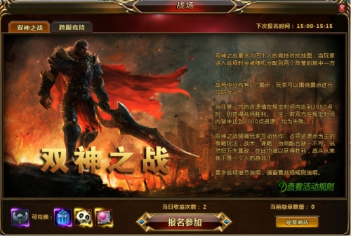 点击“战场”图标,并切换到双神之战分页下