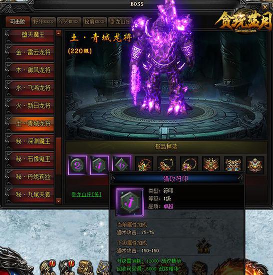 击杀镇守的五大boss将有丰富的奖励,将有极大几率获得战纹,迅速提升你的战斗力!