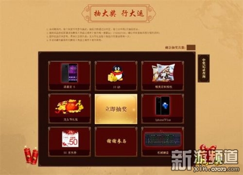 在龙头节福运活动中,不但可以领取游戏礼包,还可参与幸运抽奖。在活动时间内,每个IP只限抽奖两次,奖品包括钢琴黑iPhone7plus、砸核桃神器诺基亚6、高逼格机械键盘、热血江湖传限量定制抱枕,以及海量京东券、QB卡等。活动时间为2017年2月24日-2017年2月28日,赶紧去参加吧!