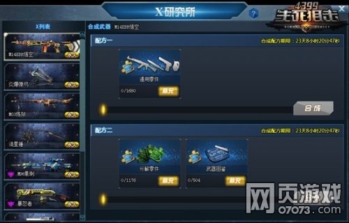 X研究所是《4399生死狙击》中一个最新的永久武器合成玩法,在X研究所里玩家可以通过各种免费活动收集到通用零件来合成各类永久武器。此外,X研究所的另一个玩法就是分解已有的永久武器来获得分解碎片,置换合成其他的永久武器。