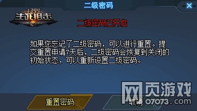 二级密码开启后,在设置中可以看到红字提示为开启状态。如果小伙伴们不小心忘记了二级密码,是可以进行重置的。重置需要提交申请进行审核,7天后,二级密码会恢复到关闭的初始状态,就可以重新设置新的二级密码。当然了,既然二级密码是用来防范账号安全的,就不要再轻易告诉他人了哦!