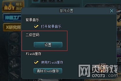 二级密码功能在游戏界面右上角的设置中。点击螺母标志打开游戏设置界面,就可以看到二级密码的功能啦。