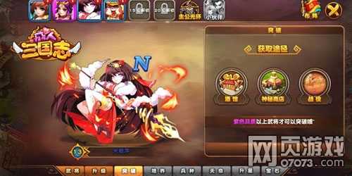 在2686《成人三国志》中,玩家可对武将进行升级、突破、培养、天命、宝石等多种养成方式提高武将能力。并且可以通过武将搭配激活武将缘分,提高武将战力。同时三国名将之间也可互相激活组合技,威力无穷、横扫千军。百余名武将,万余种搭配,让每位玩家都有独一无二的配备。