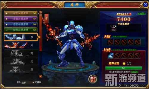 在1k2k《火焰神》中,你可以选择各式各样的魔神,魔神可以通过碎片合成或合体得到,不同的魔神拥有不同的外形,当玩家进行变身操作时,可将角色外形替换为魔神外形。不同魔神间所拥有的属性特点以及技能都各不相同。