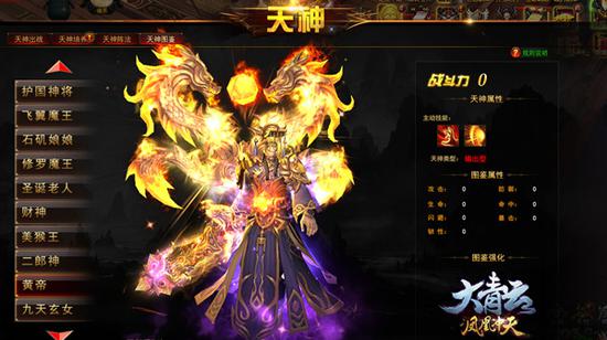 封神时代,英雄辈出。若不是姜子牙破阵斩将封神,并载入册中,恐怕鲜少有人会知道,世间居然存在这么多实力强大的神。在《大青云》里天神图鉴就相当于封神榜一样,记载着无数实力强大的天神。当玩家获得天神卡即可激活对应天神,无需获取天神卡品质,即使是白卡,也可以激活对应天神图鉴。目前天神图鉴包含18个天神图鉴,激活图鉴后可提供全属性战力加成。消耗“天神图解石”特殊道具,可对激活的天神卡图鉴进行等级提升,提高角色全属性加成,让你的实力更上一层楼!