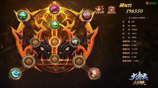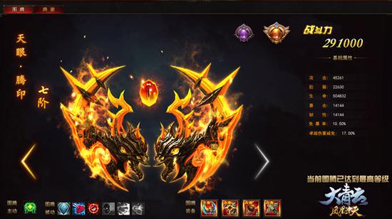 古老的民族对图腾都有着崇高的信仰,因为在他们眼中,图腾蕴藏着就连科学都难以解释的神秘力量,它是天神祝福的产物,保佑着整个民族的和平与安定。然而在《大青云》里,图腾不仅象征着神之祝福,更拥有无比强大的威力。图腾可以提供人物大量全属性的属性加成,消耗图腾进阶石可提高祝福值,使图腾力量得到全方位的激活。除人物全属性之外,图腾系统还额外提供“卓越伤害减免”的独特属性加成,百分比减免玩家受到的卓越伤害。
