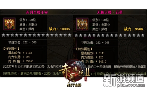 其实,在9377《赤月传说2》里,武魂是一个独立的系统,也是玩家角色死亡后不会掉落的其中一个特殊装备,9377《赤月传说2》武魂装备主要有职业攻击、暴击威力、内功恢复和内功值四个属性,由于武魂本身是一个装备,因此玩家可以将武魂装备进行强化,强化后你可以获得更强大的属性。