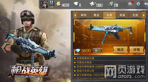 以AK-47、M4A1为代表的枪支,都是枪战狂热迷内心不二的名枪之选!但在4399《枪战英雄》,耀世降临的圣兽枪【白虎】,将给你不一样的疯狂火力!这把武器集快射速和高移速于一身,贴身扫射时犹如白虎出渊,一触必死;更可在战斗结算后,为本方所有人提供经验的金币加成,绝对是冲锋枪里当之无愧的王!