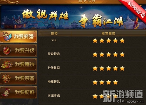 材料的获取则可以通过江湖宝藏:各种宝石和材料,日常活动:各种宝石和材料,地下密路:技能书, 元宝商城:技能书和材料,四象玄们:宠物材料,披风密境:披风材料,世界挂机:各种宝石和材料。当然每位玩家的侧重点不同,进阶的方向也不同,希望大家都能在游戏中找到最适合自己的玩法!