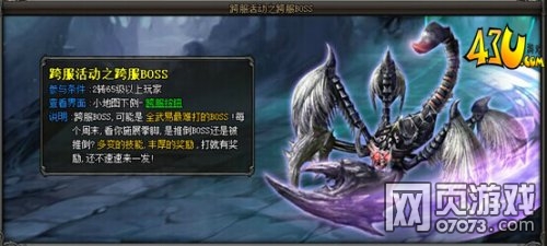 跨服BOSS的可怕已经在这片大陆上流传已久,要想去一睹其真容,玩家要先达到2转65级,于每周六、日的21:05-22:10直接进入跨服BOSS活动。