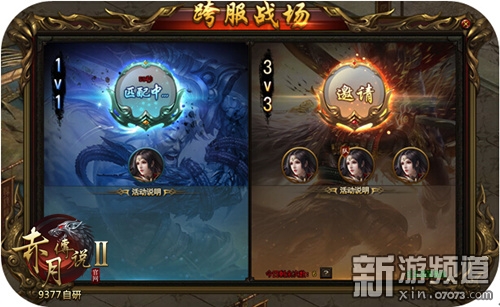 除了跨服3V3外,9377《赤月传说2》还为喜欢单排的你准备了跨服1V1玩法,跨服1V1战场开服时间为每天晚上的19:00-20:00,玩家达到3转即可报名参与哦。