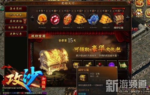 注册并登陆,就送15日豪礼,内含海量金币、高等级宝石、高转战印等多种超级道具,让你轻松上手传奇攻沙,轻松赢在起跑线上。此外,在《攻沙》,在线有在线大礼包、签到有签到礼包、离线有离线经验和资源补偿。更刺激的是,《攻沙》官方还会定期在各大媒体上放出内容丰厚的独家礼包,势必能让玩家大呼爽快!