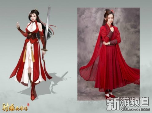 一袭红袍配上火辣身材,与杨康左右握剑的镜像姿势,也十分巧妙地道出了两人的关系。