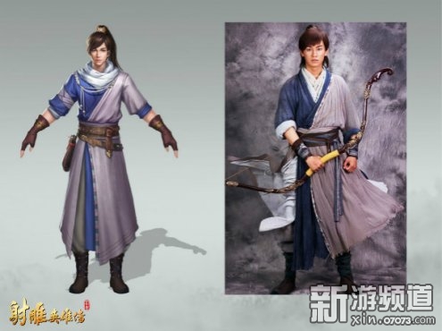 灰蓝相间的色调,略显简单的服饰,点睛之处的酒壶,寥寥之间让郭靖的质朴性格尽显。