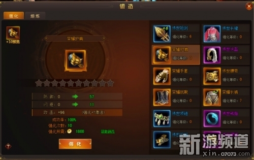有了温柔乡可别忽略了实力的锻造,游戏中玩家可以花费铜币对装备进行强化,强化提供大量属性加成。每次强化无论成功或失败都会消耗强化次数,且当强化到达一定等级后,强化将会有一定几率失败,吞噬同品质的装备则可以增加成功率和强化次数。强化达到指定星级后还会激活附加属性,提供大量属性加成。