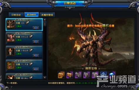 魔域永恒中,玩家会有很多机会遇见大BOSS,尤其野外BOSS在各个野外场景出现,各个野外BOSS的出现场景,BOSS越高级,掉落的装备也越高级,产出的幻兽也更极品哦,时刻留意BOSS面板的刷新信息,抢BOSS快人一步!