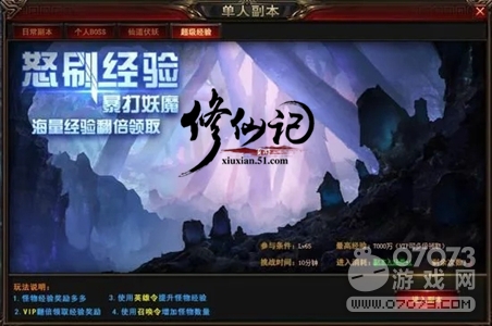 角色到达65级后,很容易卡主线剧情,这个时段的求仙任务可以做,但是不用执着。这个等级段,游戏开放了个人超级经验副本,想要快速升级的玩家,这个副本每天两次可不能落下,而且,最好把每次副本里使用英雄令和守城令的权限都用完,这样能增加不少经验。