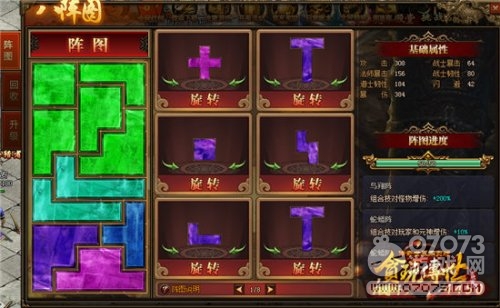 游戏新增“八阵图”图玩法,处看却有俄罗斯方块的即视感。八阵图会根据玩家角色等级和境界级别,分别对应开放蛇蟠阵、鸟翔阵、虎翼阵、龙飞阵、云垂阵这5档阵法。同时每种阵法分为普通 无暇 精致 完美 至尊5个品质,品质越高属性越多,可提升的等级也就越高。
