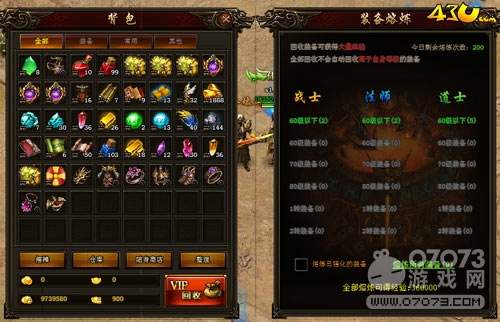 想要在43u《沙城红颜》中快速升级首先得拥有海量经验,最简单获得海量经验的方法就是熔炼啦!熔炼不仅可以获得海量经验还可以获得护盾碎片哦!反正打到非本职业的装备也没有其他用途,不如将它熔炼来得经验也算是重新再利用了!另外提升VIP等级也是不错的途径哦!