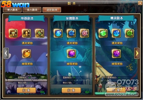 想要获得养成材料,除了氪金买买买那就只能去参加进阶副本了。不同的进阶副本有着不同的通关奖励和掉落奖励,这些奖励可以帮助你升阶对应的养成系统。58wan《冒险世界》奇异之旅还没有探索完,怎么能半途而废,赶快加强实力,成为冒险大陆的至尊王者吧!