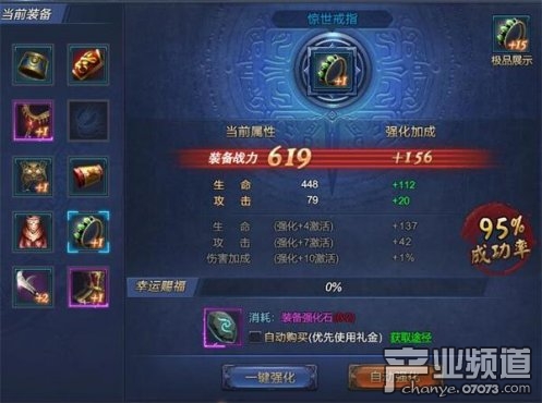 最强的战斗力加成系统,华天龙游戏《怒斩千军》强化装备将为你的战斗力大幅度暴涨,每一件装备都可以强化,强化后属性以及战斗力都会有不一样的飞跃,装备强化需要消耗装备强化石,装备强化石可以通过副本,通天试炼,跨服试炼等活动方式获得,你实力越强升级装备的速度越快,永远快别人一步!