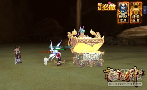 传说中的神魔秘宝现世,引爆全服开启夺宝乱斗!每天15:00和19:30进行限时挑战,由于宝藏守护者实力强大,需要最少5名玩家联合作战,战士嘲讽开怪,祭祀回血加奶,不同职业配合才能成功将其击杀。BOSS死亡后在场玩家将开始抢夺掉落的神魔秘宝,开启宝箱即可获得金色符魂、异兽之魂等丰厚奖励!