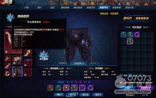 高级阵法精修同样需要高级阵法达到紫色品质;当前装备高级阵法所镶嵌符文等级总计要达到8级。