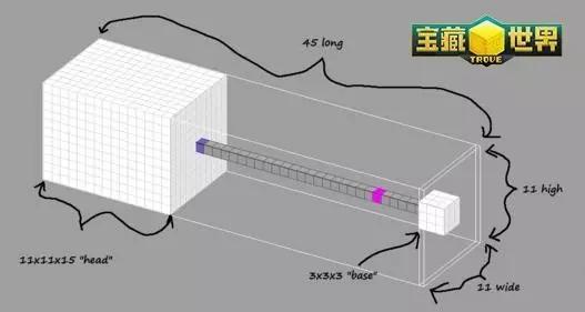 长枪武器MOD的最大范围45x11x11,头部范围为15x11x11,从头到尾必须45格长,把手理论上需要21格长使其看起来合理,尾端需要一个3x3x3的方块,并且这不会算进把手长度。