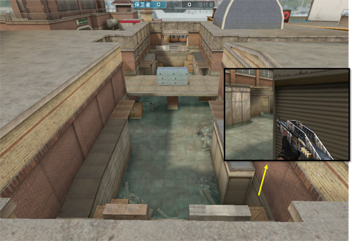 上图所示的是A大道A拐附近的视野。这可以说是这张地图最复杂的地方了,掩体和可以阴人的位置是比较多。并且中间是有一个岔路的。
