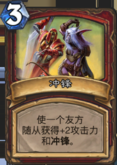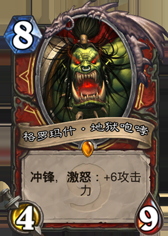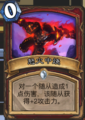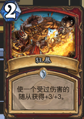 地狱咆哮 + 怒火中烧 + 狂暴 或 地狱咆哮 + 怒火中烧 + 严酷的监工 土豪武器战的比赛终结组合,自带冲锋的老爹上去就是12+的伤害。 注意:老爹一定要被激怒!至少留一张激怒才能完美配合。 |