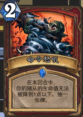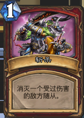 精灵弓箭手/石牙野猪 + 斩杀 或 旋风斩 + 斩杀 或 严酷的监工 + 斩杀 战士的秒杀小配合,可以通过各种形式进行对敌方的高威胁随从进行清除。 手上有这些牌心不慌。 |