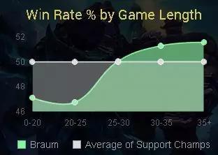 布隆是一位在后期会迅速发力的英雄,在其数据中能够明显看出,随着游戏时间的递增,布隆的胜率也会逐渐提升,因此可以说布隆是一位后期比较容易翻盘的英雄, 因此小伙伴们在使用布隆的时候即便前期线上有点小逆风也不要着急,应该和自己好好商量对策,进入中后期的团战时才是你真正发力的时候。