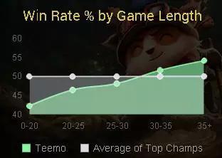 小提莫的后期胜率非常高,即便在劣势的情况下,提莫的防守能力也很强,蘑菇带来的伤害、减速效果非常明显,只要团战之前提莫埋下足够的蘑菇,团战将会非常轻松,当然带来的副作用就是早期结束的比赛中提莫的胜率很低,因此提莫是一位非常强的后期英雄哦!