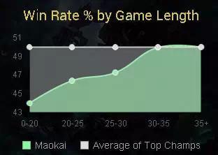 大树的胜率随着比赛时间的延长也呈现一个非常明显的上升趋势,这是以为进入后期后大树装备成型,他对对方后排的威胁力逐渐提升,同时因为自己的坦克能力又不容易被集火秒掉,大树自身操作也并不复杂,小伙伴们可以考虑尝试一下哦!