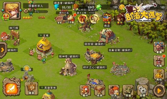 一个强大的部落,可以容纳更多的原始人和培养强悍的战力,在游戏中,无论招募英雄还是培养兵种、升级技能都需要部落的支撑,所以作为酋长除了带领部落战斗还需要为部落发展“主城”、建造“英雄营地”,开发“金矿”、收集资源等。