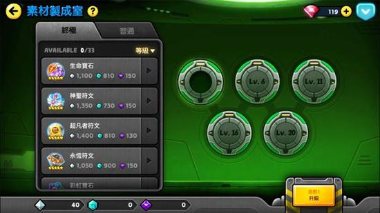 素材制成室:在此可将萃取到的水晶,用来制作终极进化所需素材。制作素材会需要一段时间,也可使用红宝石来缩短制作时间。