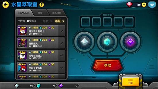 水晶萃取室:在此可将 Ranger、进化素材、与装备进行分解,目的是萃取出水晶。水晶可以用来制作终极进化所需素材。所萃取出的水晶数量多寡,将视玩家所合成的Ranger、进化素材、与装备等级而异。