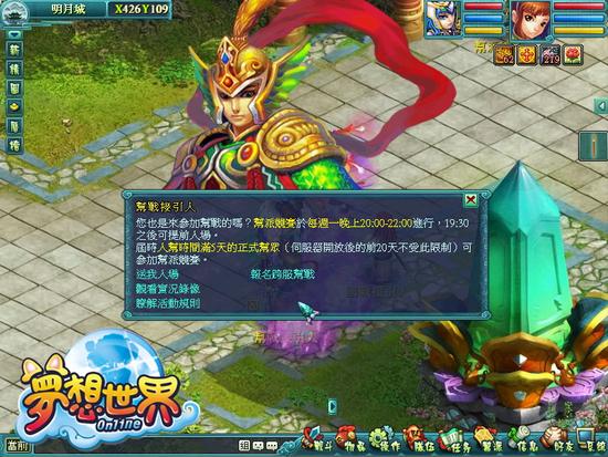 在众多勇士的期待下,梦想大陆战火燃起,各大帮派号召帮众,准备跨服齐聚,逐鹿明月之巅,究竟‘天下第一帮’的殊荣会花落谁家?各伺服器自认为强大的帮派,在本次改版后,不用担心没有舞台展现,只要帮派通过帮主或副帮主支付一定的帮派资金,即可报名参加跨服帮派擂台赛,参加帮派透过系统选出代表伺服器出战的帮派,并在帮战比武场中进行角逐,决选出称霸梦想世界的王者之师!