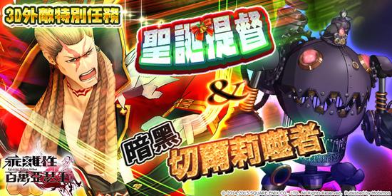 本次改版3D特别任务中,圣诞提督 & 暗黑切尔莉噬者登场囉!即日起至2016年7月14日维护前,击败‘圣诞提督’或‘暗黑切尔莉噬者’,将有可能获得‘奏乐型布兰克韦恩’、‘华恋型贝莉珊’与‘闇堕硬币’唷!各位亚瑟快来协力迎击‘圣诞提督’与‘暗黑切尔莉噬者’,获得大量奖励吧!